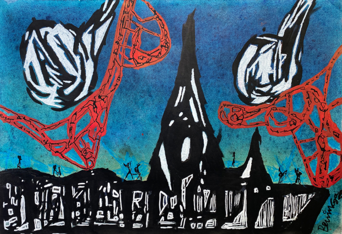 Leo Beninga erschafft Bildwelten von rätselhafter Intensität, in denen sich Traum, Rausch und Wirklichkeit auf irritierende Weise durchdringen. Der Hamburger Maler, der im Grindelviertel ein Kelleratelier und ein Atelier mit Tageslicht unterhält, ist bekannt für seine figurativ-abstrakten Werke zwischen Surrealismus und Art Brut.